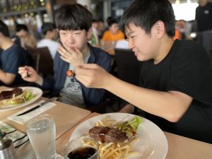 本日もあいにくの雨模様でしたが、午前中は学生スタッフさんとグループごとにケアンズ市街をウォークラリーして巡り、お昼は各自でフードコートなどで食べました。午後からは昨日に続いて英語学校で語学研修。夕方、ようやく海岸で海を見ることができ、近くのレストランでディナーを食べてホテルに戻りました。