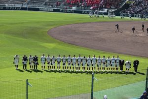 高校Ⅲ類硬式野球部が、第96回選抜高等学校野球大会に5年連続15回目の出場を果たしました。1回戦で北海(北海道)に7対1、2回戦で神村学園(鹿児島)に4対2で快勝し、準々決勝へと駒を進めました。