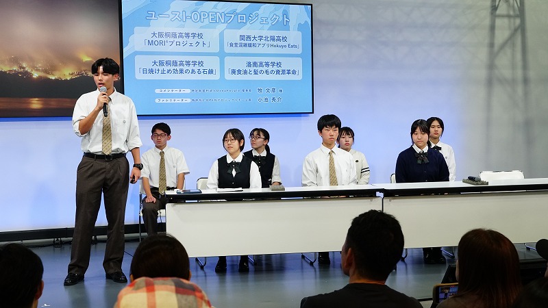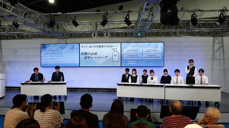本プログラムでは、関西大学北陽高等学校の学生さんたちと共に、知的財産をヒントに身近な課題を解決するためのアイデア提案を行いました。全8チームの中から、発表において優秀だったチームが、大阪・関西万博でのイベント「明日を変える知財のチカラ」にて登壇し、プレゼンテーションを実施致しました。