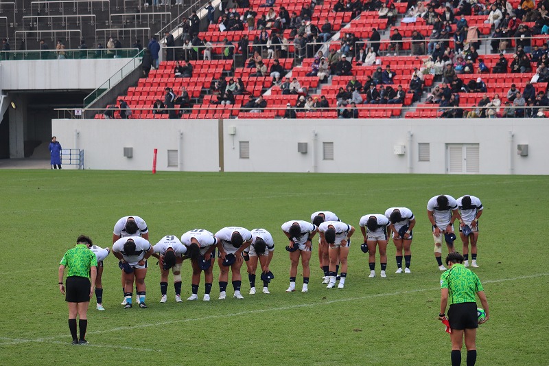 1月5日に行われた準決勝は、前年度の優勝校で花園大会三連覇を狙う、神奈川県代表の桐蔭学園との対戦となりました。前半を0ー10と劣勢で折り返しましたが、後半4分にトライを挙げて勢いがつくと、後半22分にもトライを挙げて14ー10と逆転に成功しました。その5分後に再度逆転されるも、後半26分にスクラムから抜け出してトライを挙げ、終盤で21-17と優位に立ちました。勝利まであと一歩というところまで迫りましたが、36分の最後のプレーでトライを奪われ、21ー24で惜敗しました。 選手たちは花園での2度目の優勝を目指して、最後まで粘り強く戦いましたが、3位という結果に終わりました。目標には届きませんでしたが、選手たちは大勢の皆様が見守る中で精一杯のプレーをし、貴重な経験を積むことができました。大会出場に際し、たくさんのご声援をいただき感謝申し上げます。