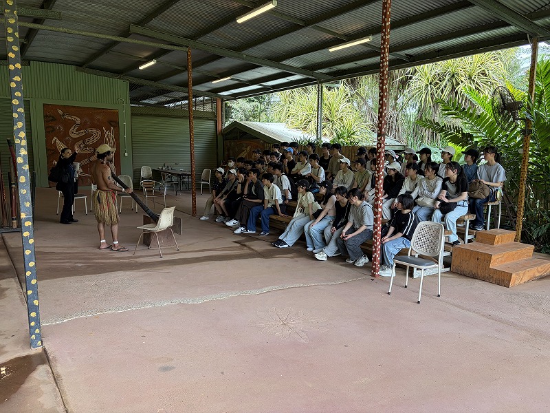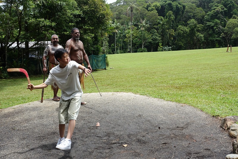 次に、アボリジニー文化体験を行いました。ブーメラン投げに挑戦したり、伝統的なアボリジニーダンスを鑑賞・体験したりと、オーストラリアの先住民文化への理解を深める貴重な時間となりました。生徒たちは積極的に参加し、異文化への関心を高めている様子が見られました。
