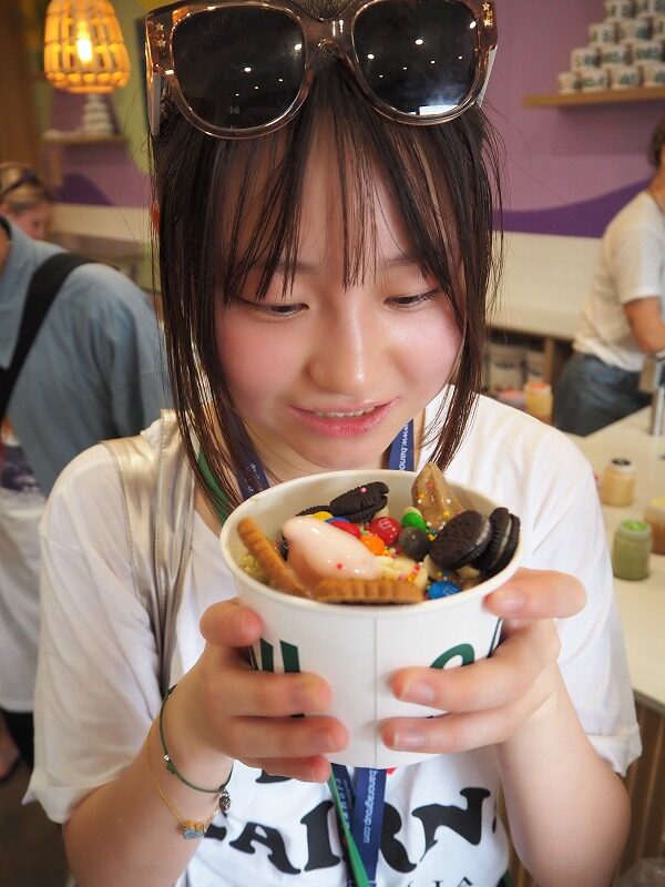 午前中は現地学生と市内散策をしました。まず海外沿いに行って、通っている大学やしている仕事の話をしていただきました。日本に訪れたことのある方もいて驚きました。その後、マーケットに行ったり、フローズンヨーグルトを食べたり、各班楽しく過ごすことができました。