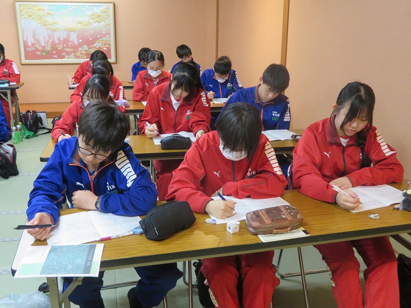 中学1・2年生はあわら市の清風荘で、中学3年生と高校1年・2年生、高校3年生(該当クラス)の生徒は、滋賀県大津市の琵琶湖グランドホテルで、友だちと寝食を共にしながら勉学に励みました。